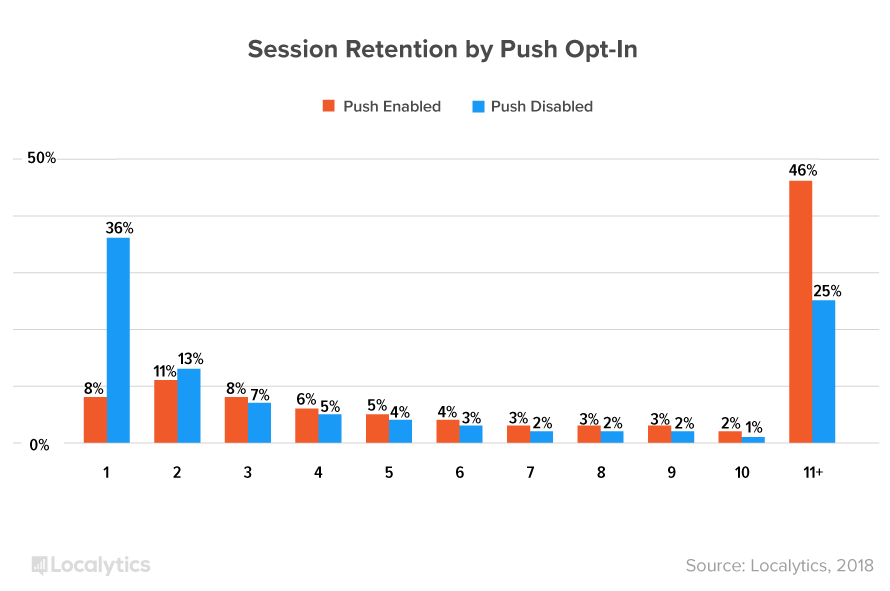 Sometimes, denying even secondary permissions can alter the entire user experience. Research firm Localytics found that users who opted into push notifications were nearly twice as likely to use an app 11 or more times than users who disabled push notifications.