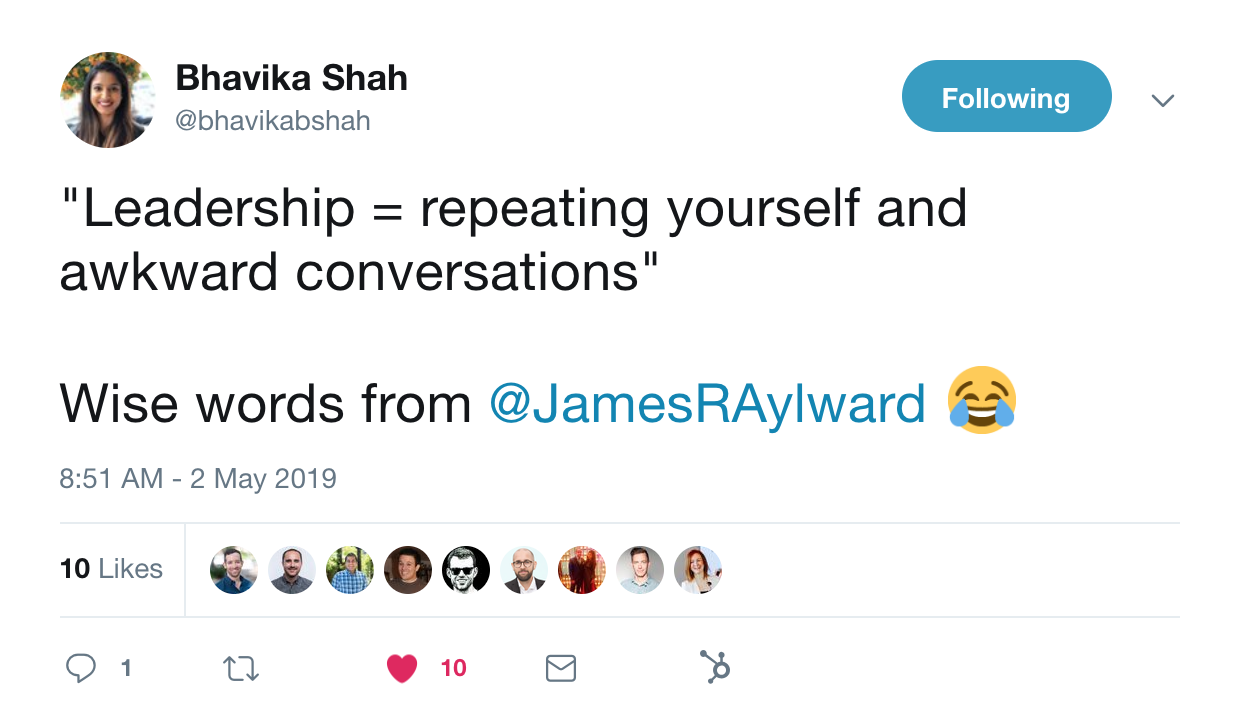 Bhavika Shah, Product at Pluralsight, quoted James Aylward by breaking down leadership into two powerful steps.