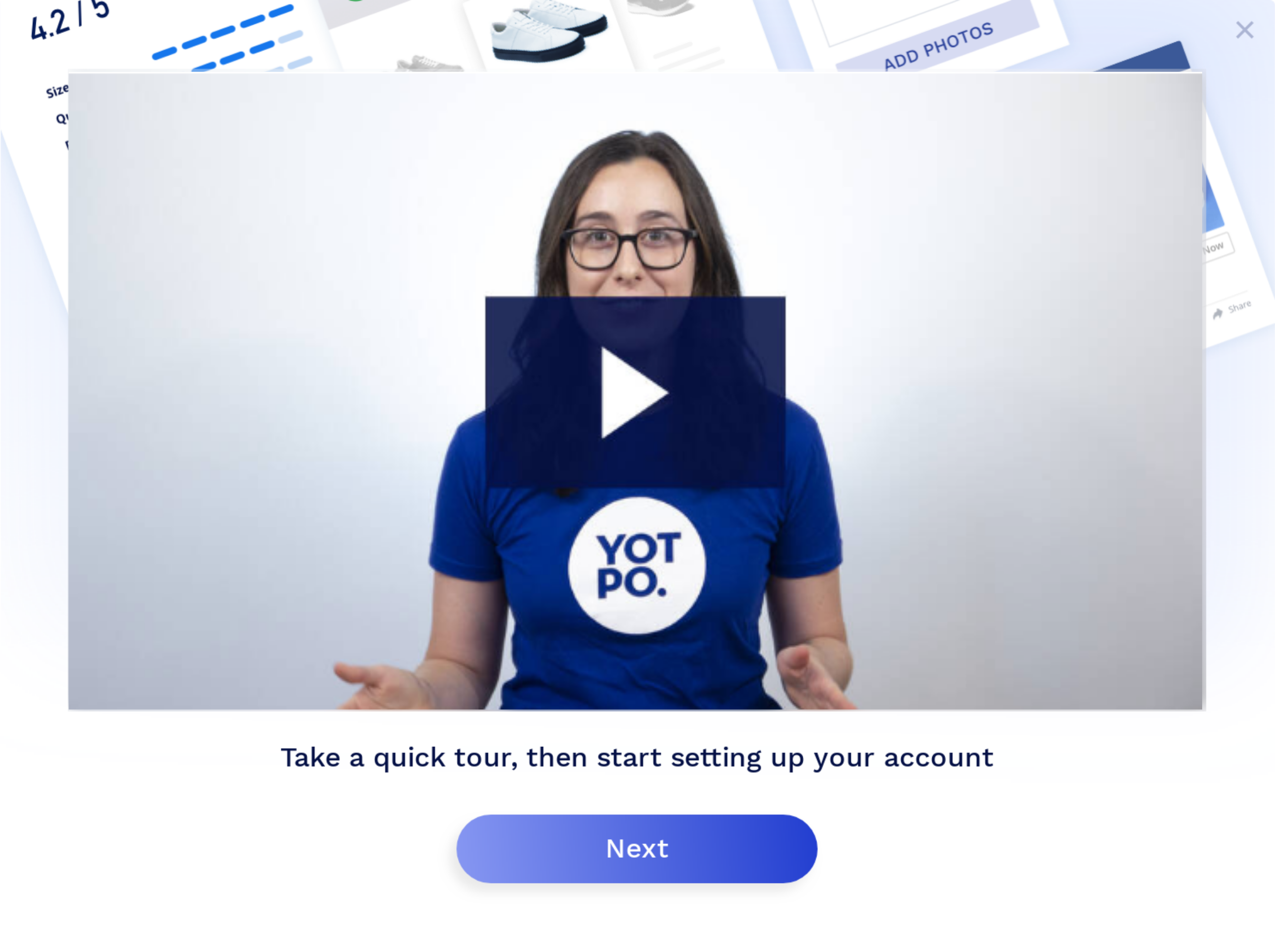 Yotpo also used Appcues to create their user onboarding sequence. They take users on a product tour via an introductory video. This approach cuts the number of steps down, but it does require an attentive audience who is willing to sit and watch the video in full.