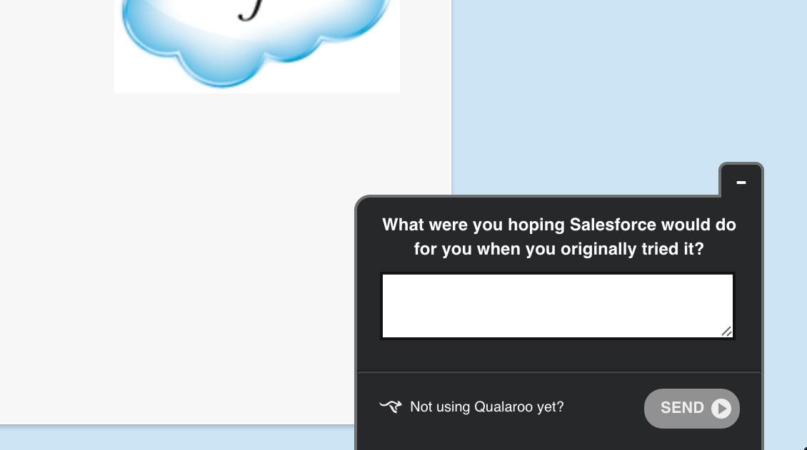 Next, you’re going to seek the intent of your “Must Have” users in signing up for your product. Present these users with the question, “What were you hoping Salesforce would do for you when you originally tried it?”